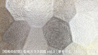 昭和ガラス 型板ガラス「石目」とは?特徴と目隠し効果|暮らしを守る昭和ガラス 昭和30〜40年代に流行した型板ガラス『石目』を徹底解説。凹凸が生み出す独特の不透明感と、現代のインテリアにも馴染む幾何学デザインの秘密に迫ります。廃盤となり貴重になった昭和レトロガラスの記録。古民家好き、建具好きの方は必見です。 2026.03.21 昭和ガラス